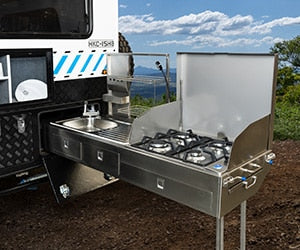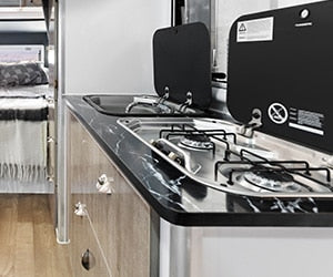 With 2-burner Dometic gas cooktop and stainless steel sink