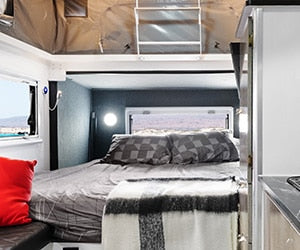 That's why we include a complete 12V and 240V power setup with all of our caravans, as standard. With a 3000W AC-switching inverter, 340W of rooftop solar with 30A MPPT regulator, 300AH of lithium batteries, 30A DC-DC charger and more, you'll never be caught short on power on your travels again.