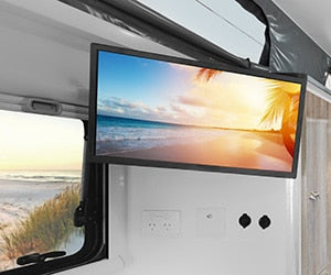 That means air conditioning, hot water, TV, quad-speaker stereo, internal and external gas kitchens, king bed with luxurious pocket spring mattress, a 3.7m awning, and more than enough 12V and USB points to charge all your devices.